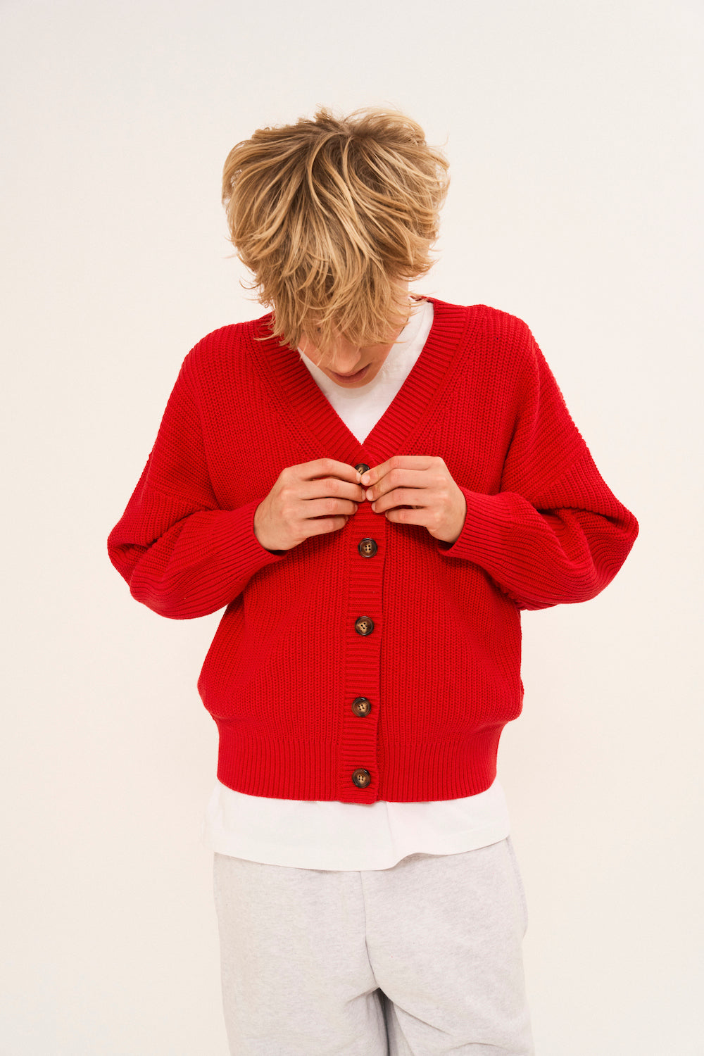 Vil du have et mere oversized look – eller forlænge tøjets levetid i garderoben endnu længere – anbefaler vi, at du vælger en størrelse op, men hver style er skabt til at kunne vokse i. De fleste styles kan nemt foldes op, mens udtrykket bevares.